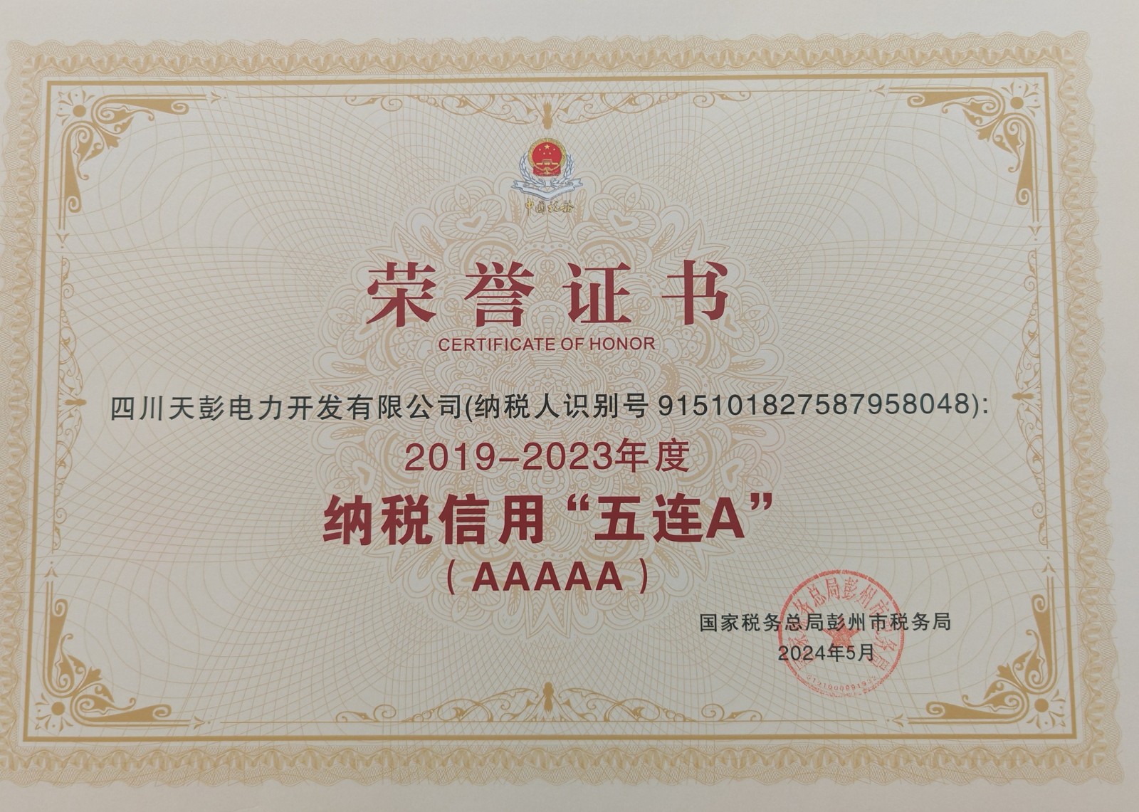 ¡¾µÂÓ®vwinÏß·µçÁ¦¡¿ÌìÅíµçÁ¦»ñ¡°2019-2023Äê¶ÈÄÉ˰ÐÅÓÃ5Á¬A¡±ÉùÓþ³Æºô